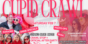 Dallas 9th Annual Cupid’s Crawl on Greenville Ave Stan’s Blue Note Crawl Stop + Official After Party Get ready, Dallas. The 9th Annual Galentine’s Cupid’s Crawl is taking over Greenville …