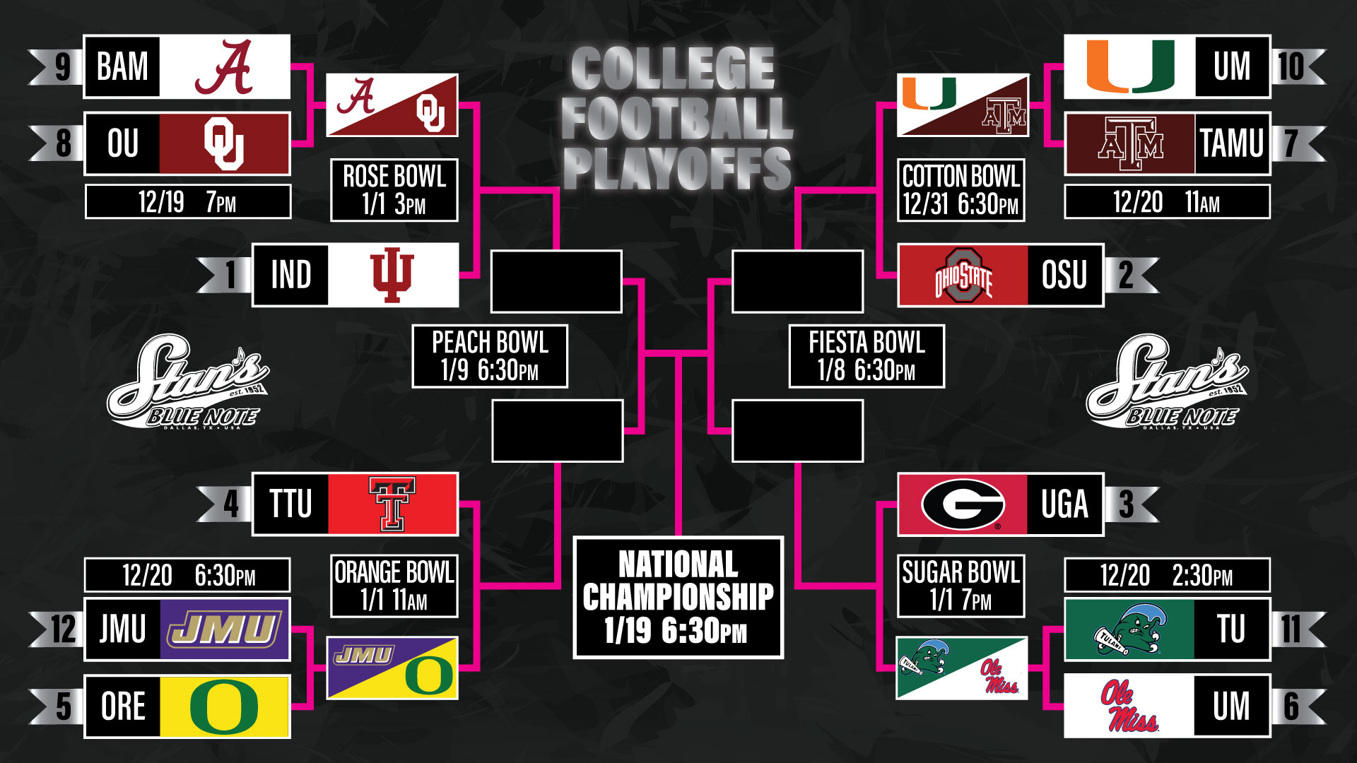 No. 1 Indiana vs. Winner of Oklahoma/Alabama at 3:00 PM
