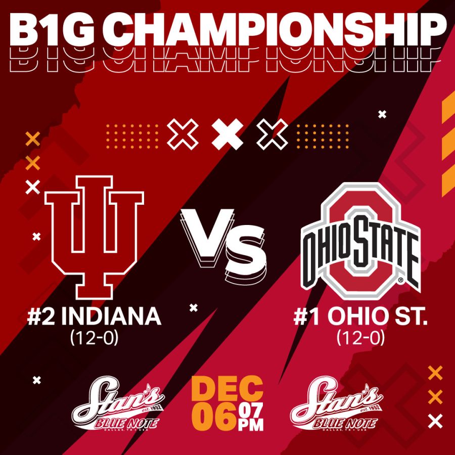 Saturday, December 6, we’re showing the 2025 Discover® Big 10 Football Championship on the big screen — Ohio State vs Indiana kicking off at 7:00 PM. Come watch the game at Stan’s, grab a seat, and enjoy $4.75 domestic drafts until 10 PM!