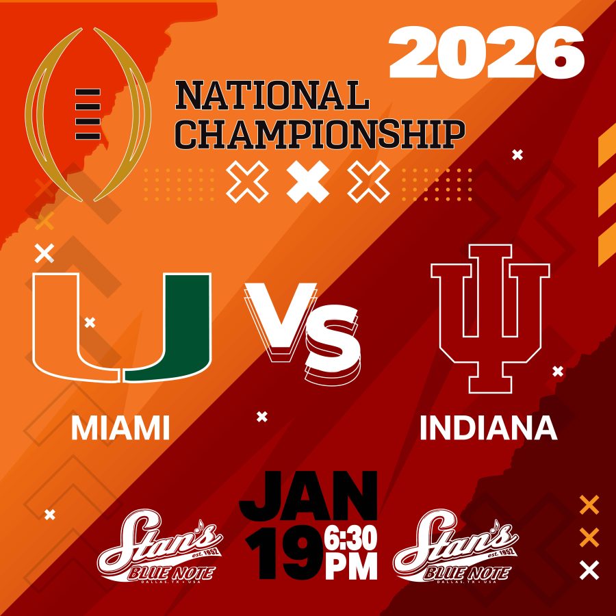 The road to the title ends here. Join us at Stan’s Blue Note on Monday, January 19 to watch the College Football Playoff National Championship Game on the big screens with game-day specials that hit just right.